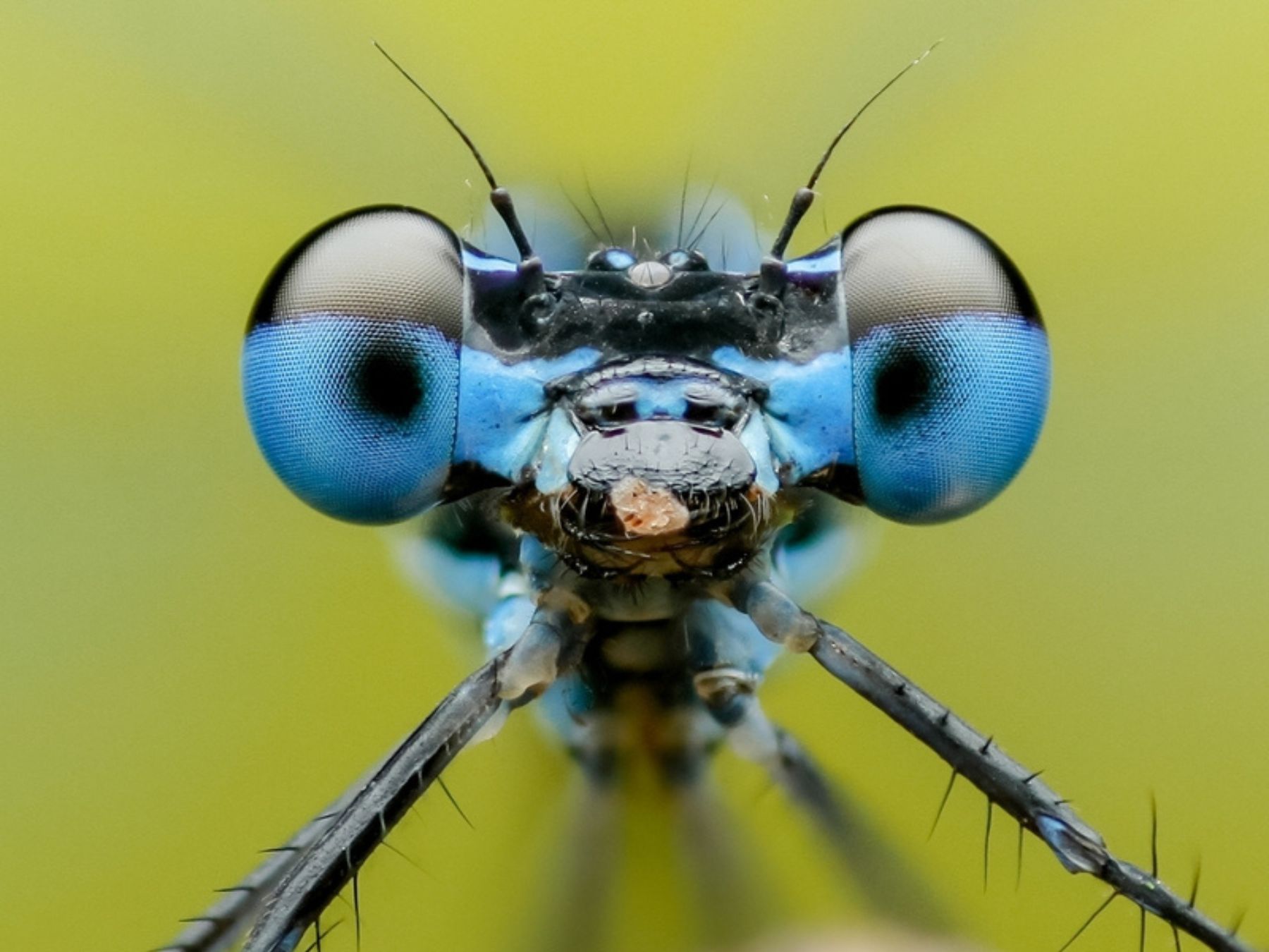Damselfly eyes are smaller and separate, stretching farther towards either side of their heads.