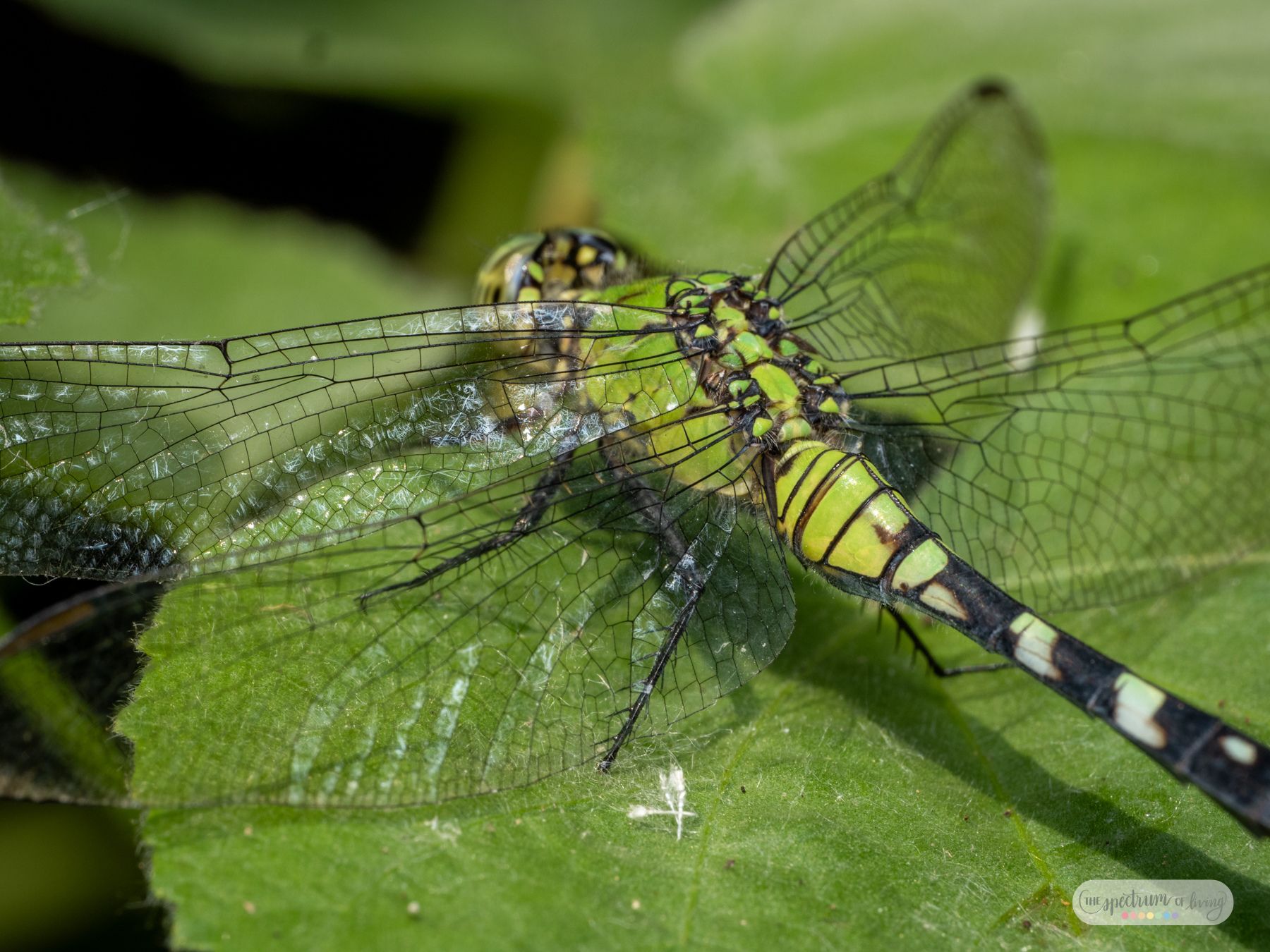 Because we’re talking wings, I’d like to mention that dragonflies are stronger, more agile fliers than less-controlled, weaker damselflies. This is predominantly due to the overall thickness of the dragonflies’ wings and their attachment points.